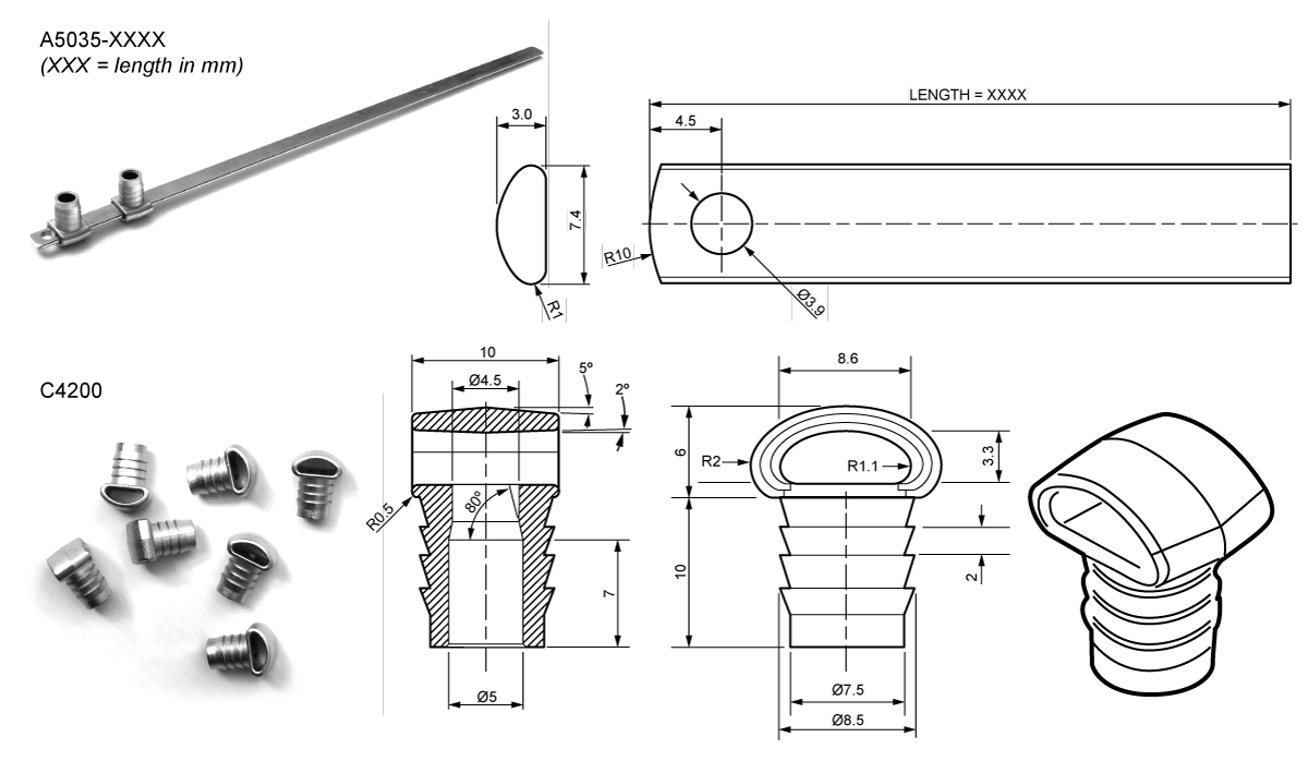 | C4200 | Quick fixing rod guide to suit the A5035 rod | Can be supplied with noise reduction peg |